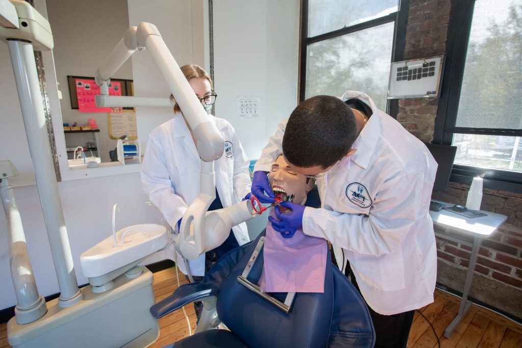 Students gain hands-on training in chairside assisting, radiography basics, sterilization protocols, dental materials, patient care, and daily dental office workflow — preparing them for real-world dental careers.